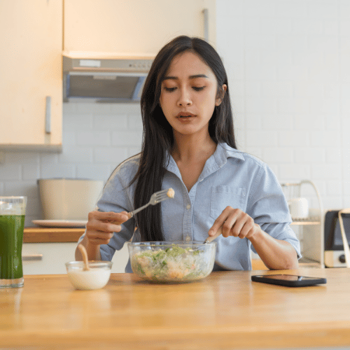 Mangez en pleine conscience, arrêtez-vous à la satiété, évitez de manger par ennui ou stress.